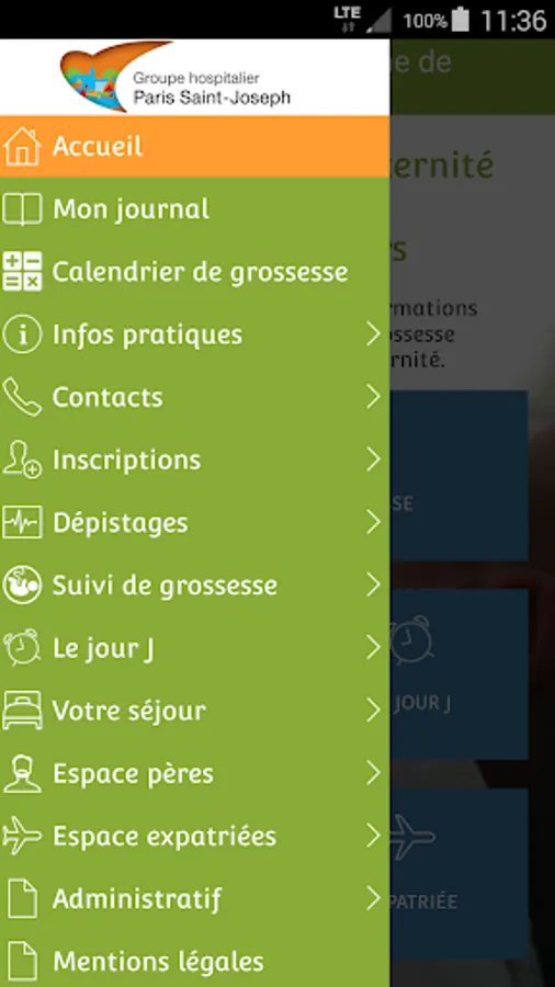 This application is intended for pregnant women with prenatal care will be provided at Paris Saint Joseph maternity or in the local network of our maternity. This application allows complete medical and practical information which will be made by clinicians on the course of your pregnancy, the organization of your prenatal care, preparation for the birth, your birth, your stay at the maternity ward, your back home and all the "extras" of Saint Joseph.