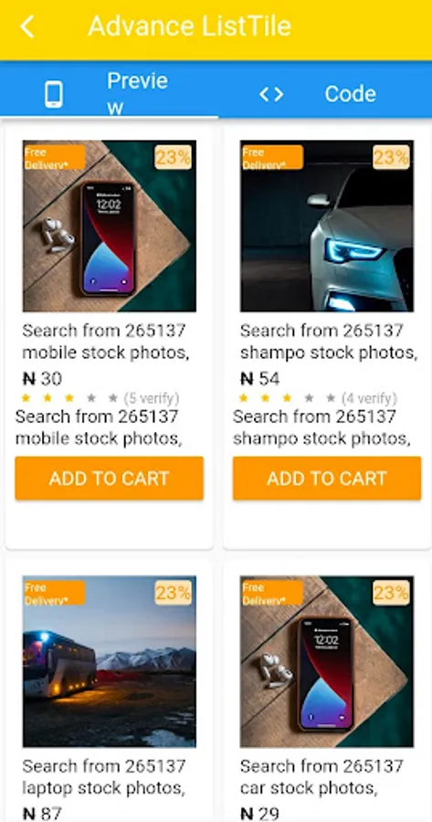 and also include Advance Widget code . and also include some pic to fetch firebase when anyone click any picture then his to go