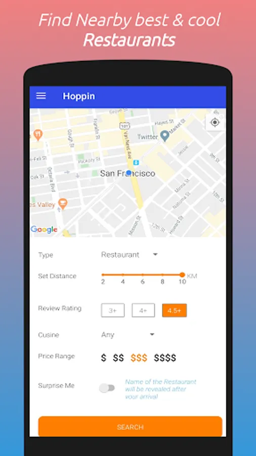 Hoppin - Discover Cool & new places nearby to you with element of Suprise . Find Curated Bars, Cafes, Restaurants and Hotels nearby to you! For FREE