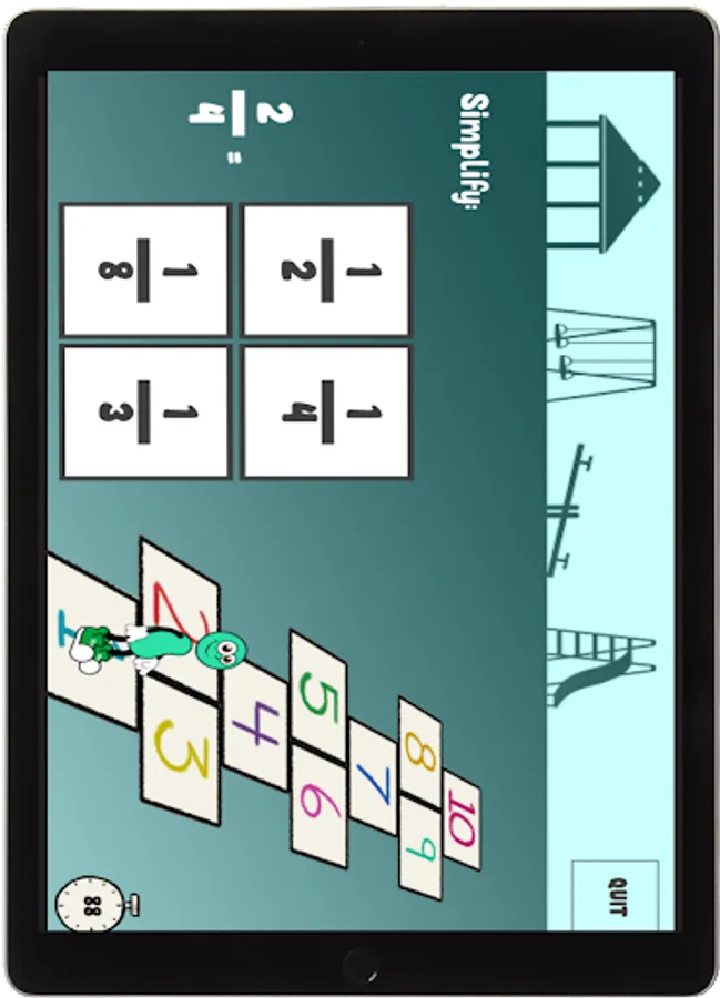 Show your ability to simplify fractions by playing hopscotch. Try all ten levels!
