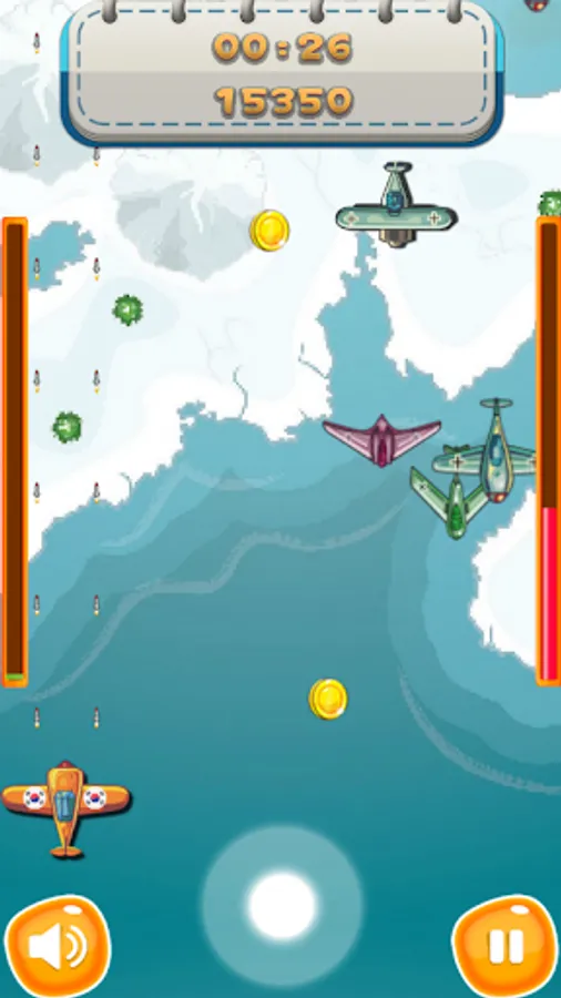It is a plane shooting game where you simply control the plane and fight the enemy. Adjust the control area at the bottom of the screen to fight and acquire items.