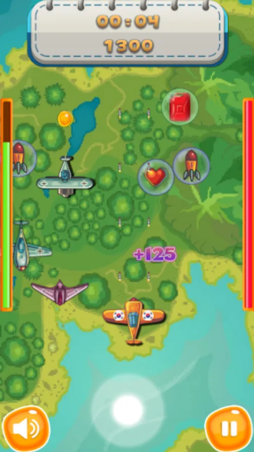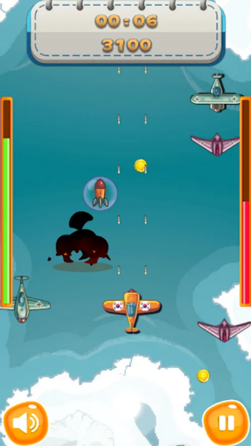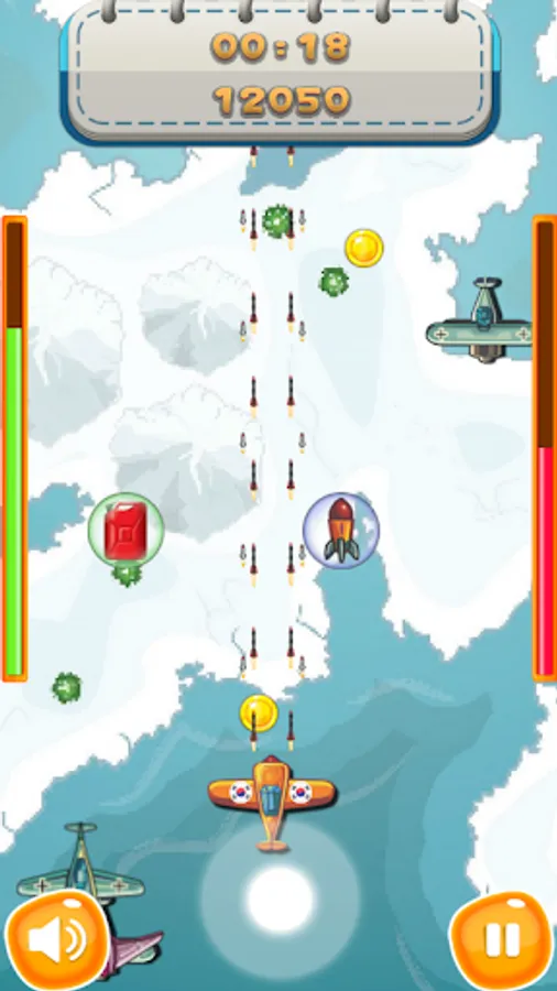 You can choose your country at first start. Choose the plane of the country you want and fight the bandit. By acquiring items, you can increase HP and increase attack power.