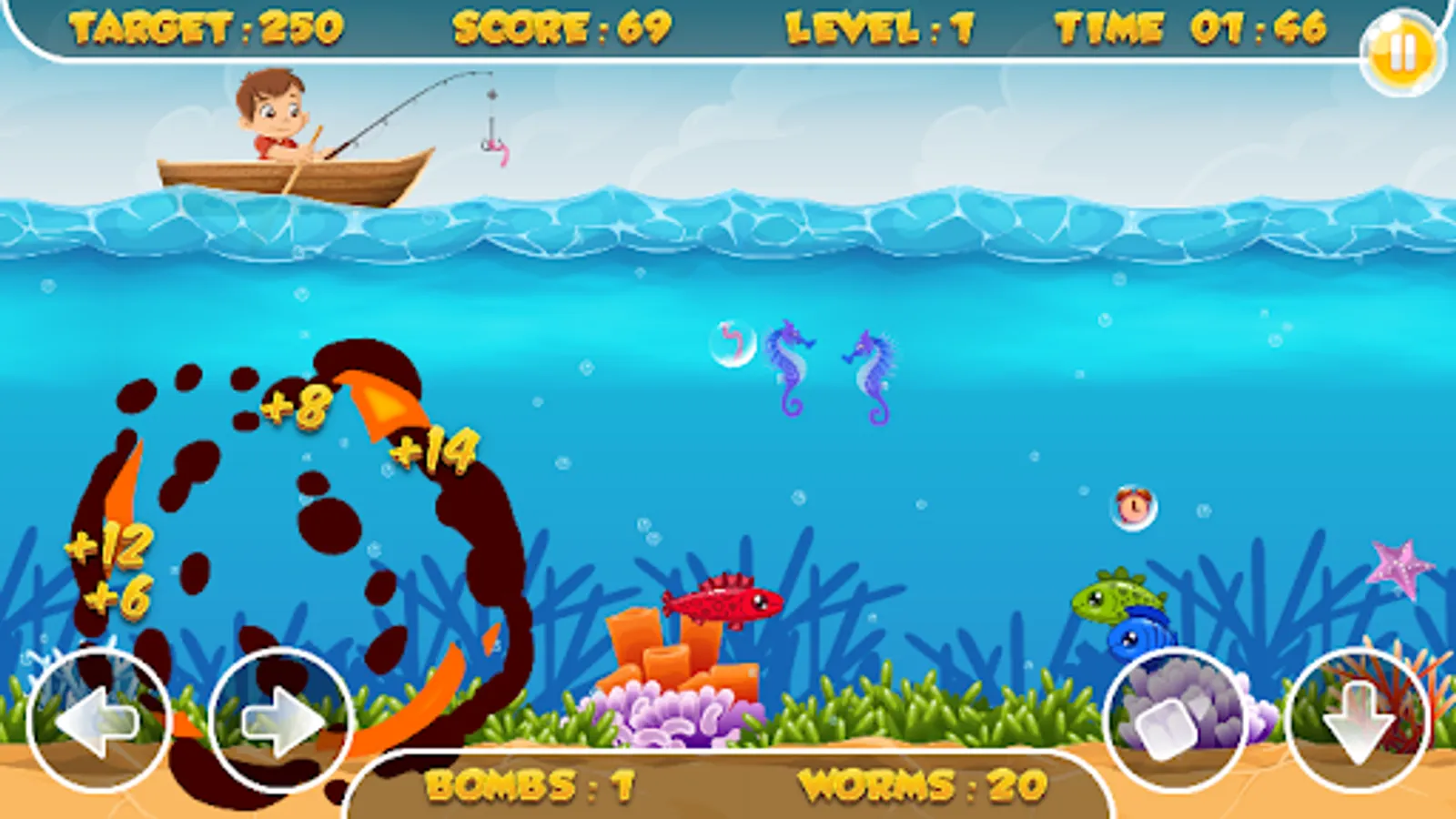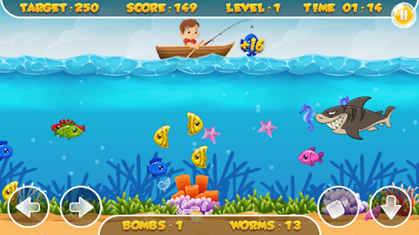 It's a casual fishing game! Collect fish and gifts by fishing, and blow your enemies with bombs! You have to collect everything possible in this game! Get the best score and become the best player in this sea war!