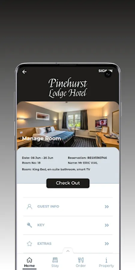 Book your room, with mobile key entry, contactless check in & check out, order your food & drink and add it to your bill.