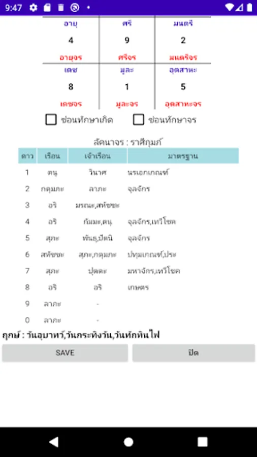 4. Tell auspicious days, such as Amarit, Luck, Sitthichok, Great Day, Fu, Blind, Sinister, etc.