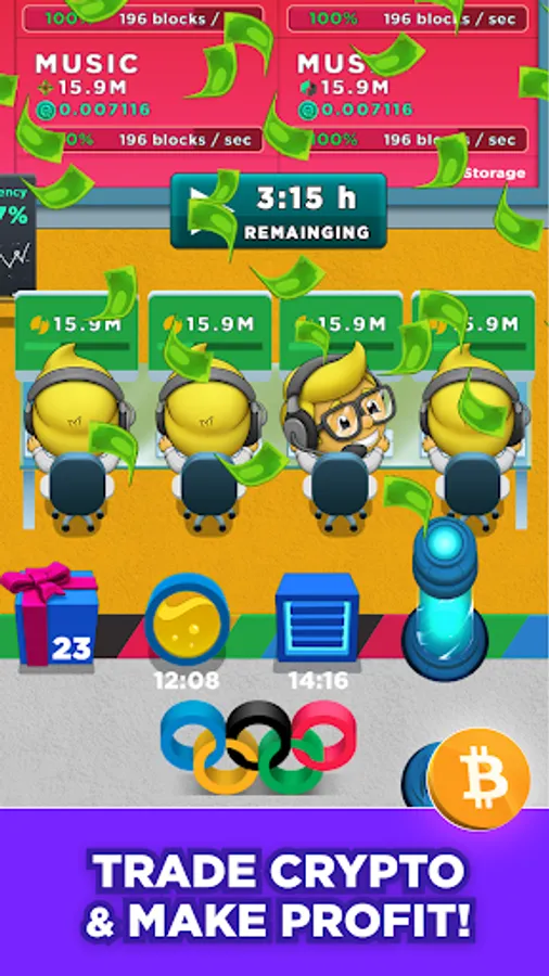 Idle clicker management simulation game that will teach you all about crypto and launch you to riches! Earn a lot of CASH by crypto mining and crypto trading! Mine DOGE, MATIC and then reach Ethereum. Once you master the skills of Crypto Miner, you will mine Bitcoin! Do you have what it takes to become the next Bitcoin Tycoon in this fun and educational game?