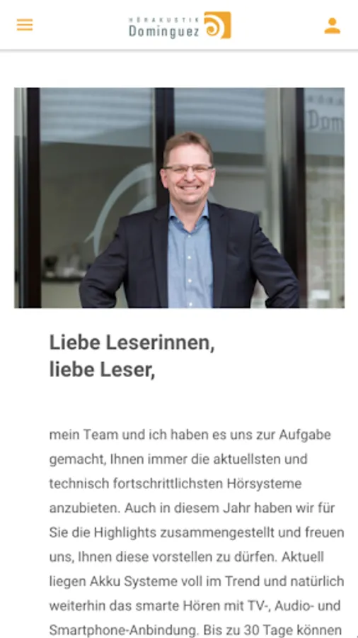 With our in-house APP, we, the Hörakustik Dominguez team, want to support and look after you as our customer even better. Here you will find everything about hearing and better understanding. Always be up to date, receive care tips, event invitations, vouchers and much more. Create your own profile and benefit from the many advantages relating to your hearing aid.