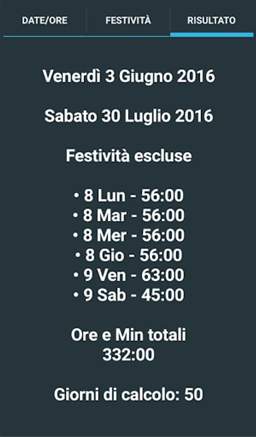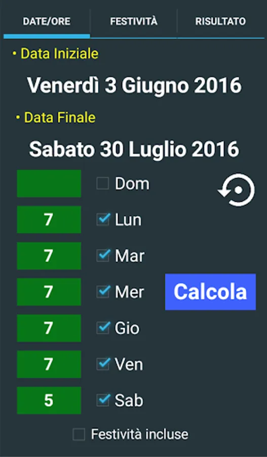 Those who work in production or in human resources often have the problem of calculating the hours / minutes of the staff. With Horas you can calculate the hours / minutes between two dates. The days of the week involved in the calculation can be indicated, as well as any holidays to be included or excluded.