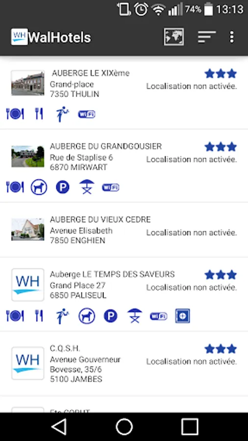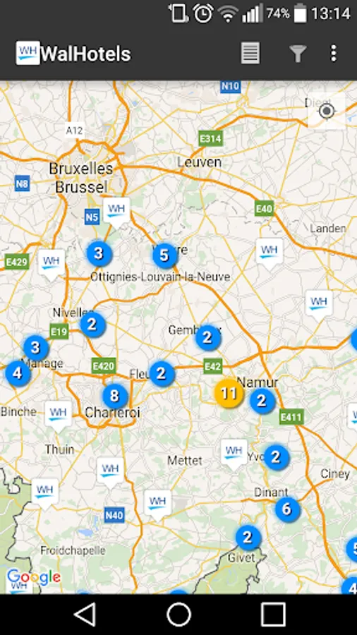 The "WalHotels" app lists all the hotel establishments of the Walloon Region. It allows you to quickly discover and book a room in the hotel that best meet your needs.
