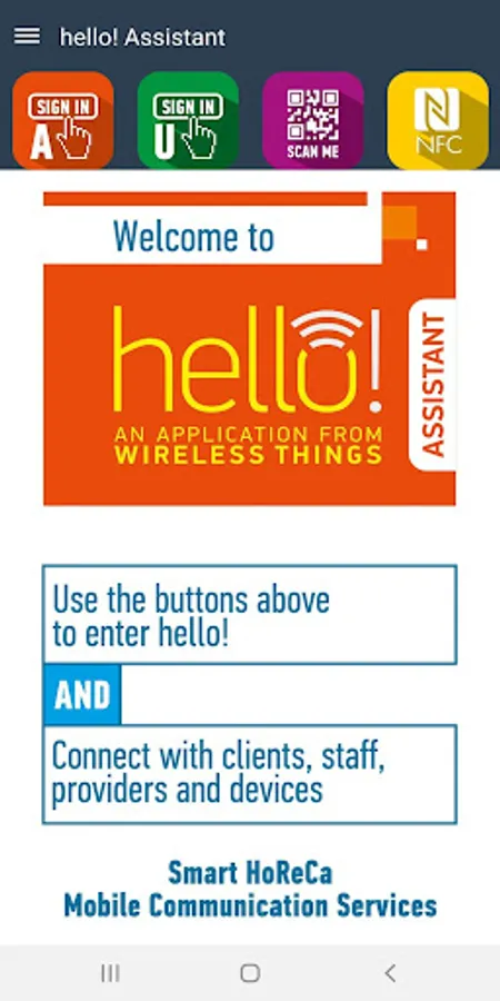 The hello! assistant app receives and manages requests from hello! clients. Requests depend on the hello! modules enabled; they can be simple calls, orders, bookings, maintenance requests, votes, etc. See the web site for a registry of hello! modules.