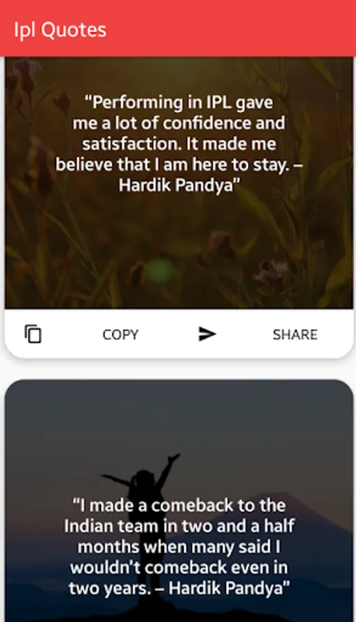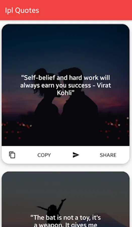 Ipl status and quotes app is a motivational, inspirational app that contains many quotes related to cricket and ipl.