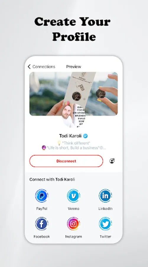 The GoTaps App allows you to customize both a personal and a business profile, so you are able to connect with others at any event.