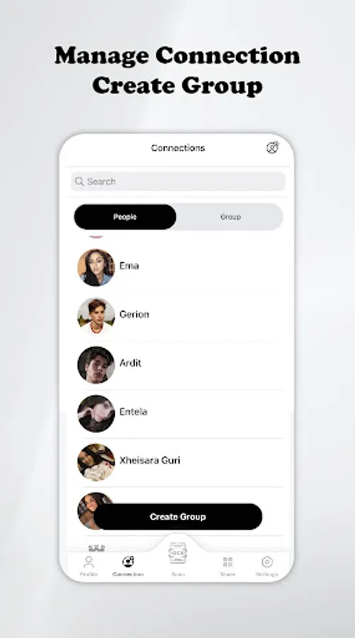 Your Go contacts automatically keeps track of everyone you meet. Met someone last weekend at a conference? Access their GO profile whenever you want and never lose another connection.