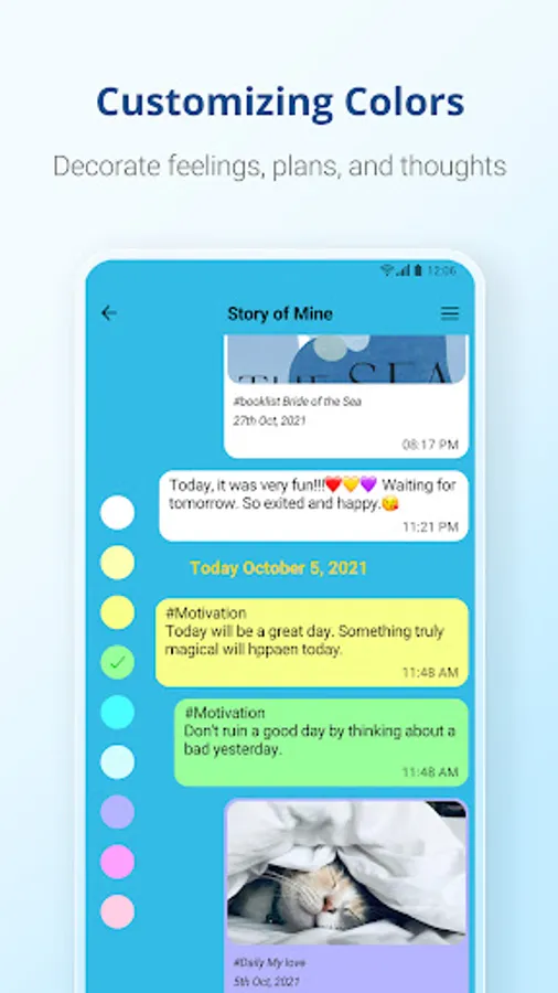 All thoughts, feelings and plans written down are archived as your own story. Only you can read them anytime later on.