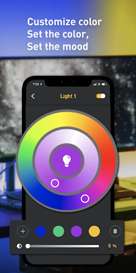 At home on your couch or 10,000 miles away you can adjust all your smart home lights settings. Just make sure you have a wifi connection and it's as easy as ever.