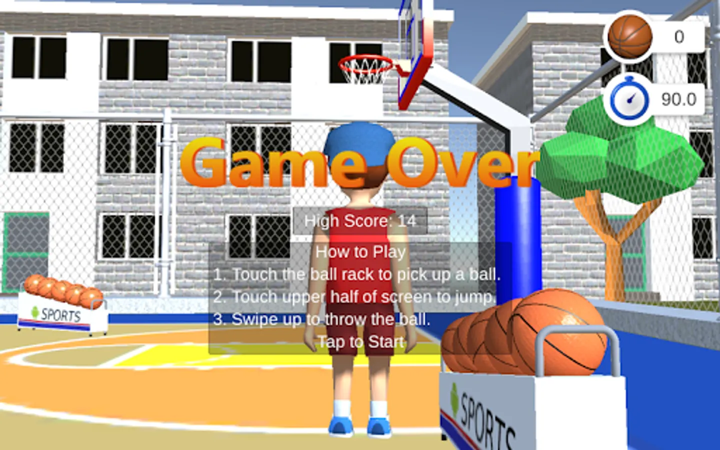 5. Game end after all 25 balls have been thrown or the 90 second timer expires.
