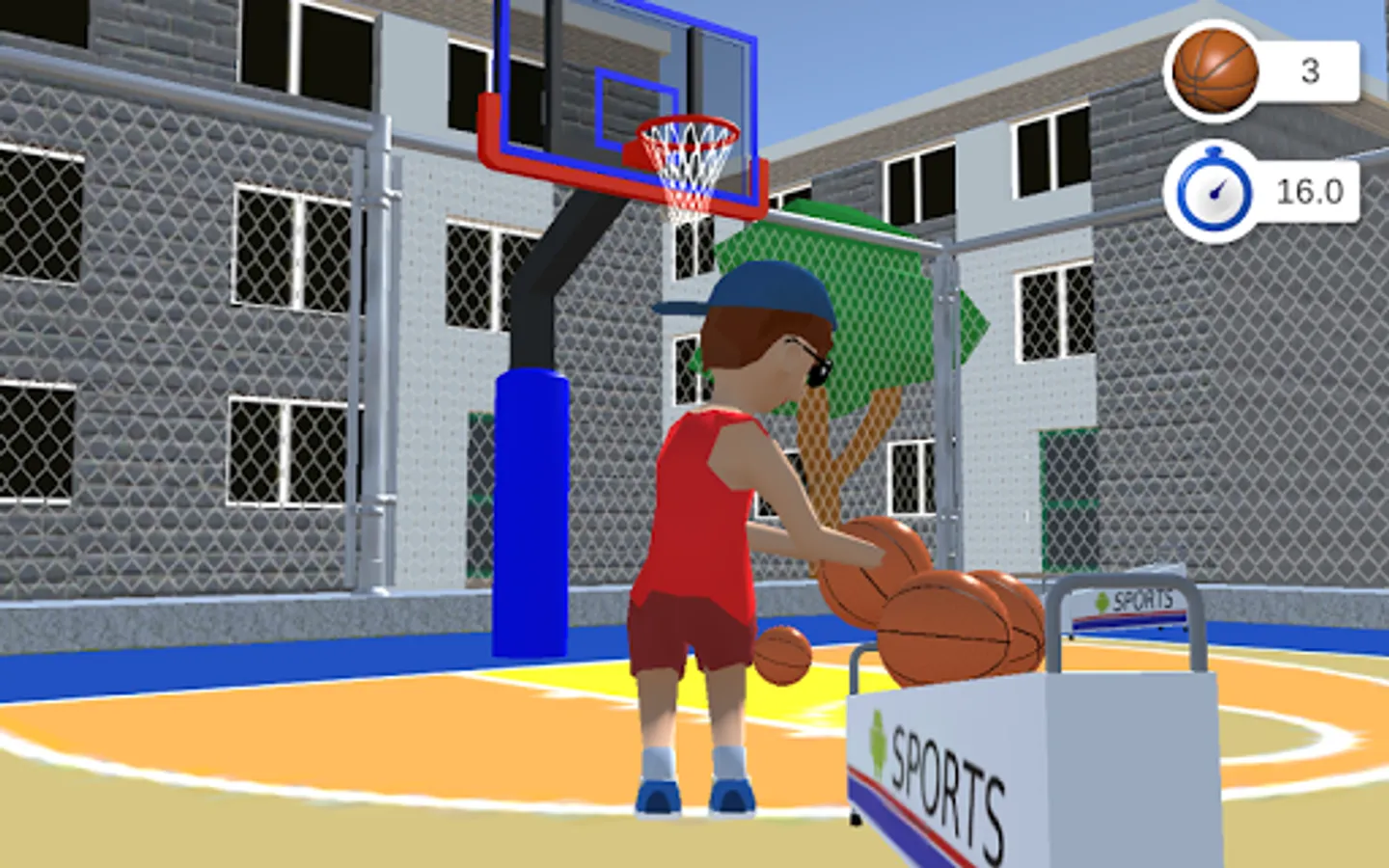 Full 3D physics is modelled including the basketball hoop deflecting when hit with a ball.