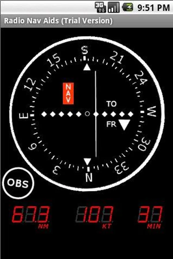 The trial version is limited to displaying the simulated radio navigation aid instrument for 90 seconds only before returning to the main selection screen. If your device's GPS has trouble locking within the 90 seconds limit then first get an initial GPS lock with Google Maps. Ads are also shown on the selection screen and after the simulated radio navigation aid screen. The full version does not have ads or the timeout.