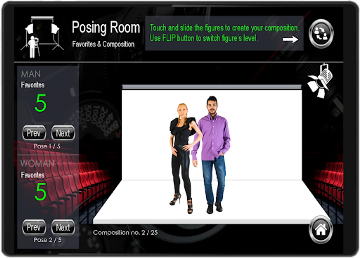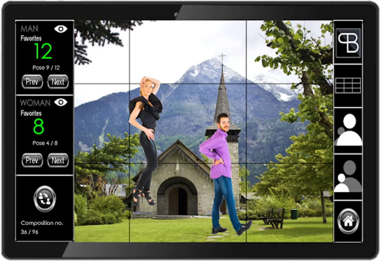My posing Book is the first app in the world that allows you to have 2 models at your disposal to get ideas for your shots to practice composing professional shots.