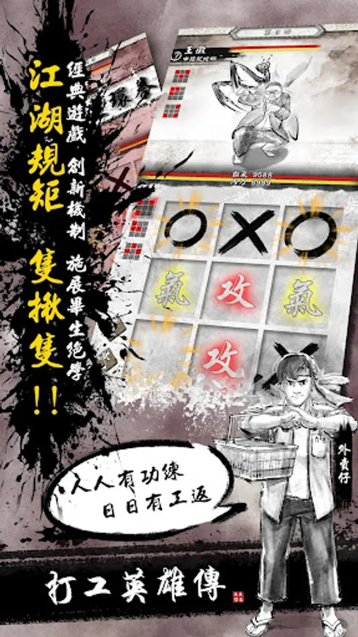 戰鬥系統改良經典小遊戲井字過三關,豐富其策略性,對弈時要謹慎取捨攻擊或防守,事前亦是配搭好武功及內功,依靠機智取勝!