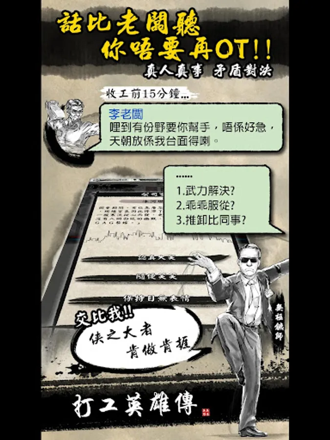 反映現實的幽默事件充斥整個遊戲,不論是職場或江湖,你都可以依照個人喜好作出選擇!