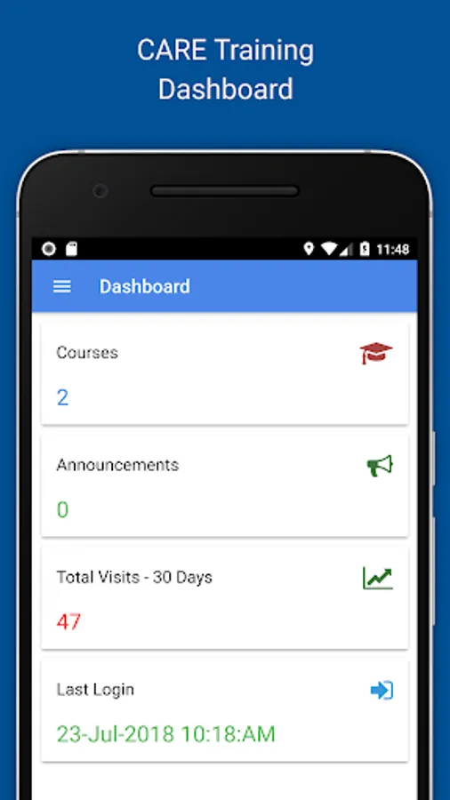 Once a Trainee has been enrolled to an online course, CARE Training App allows them to access all the course material and content.