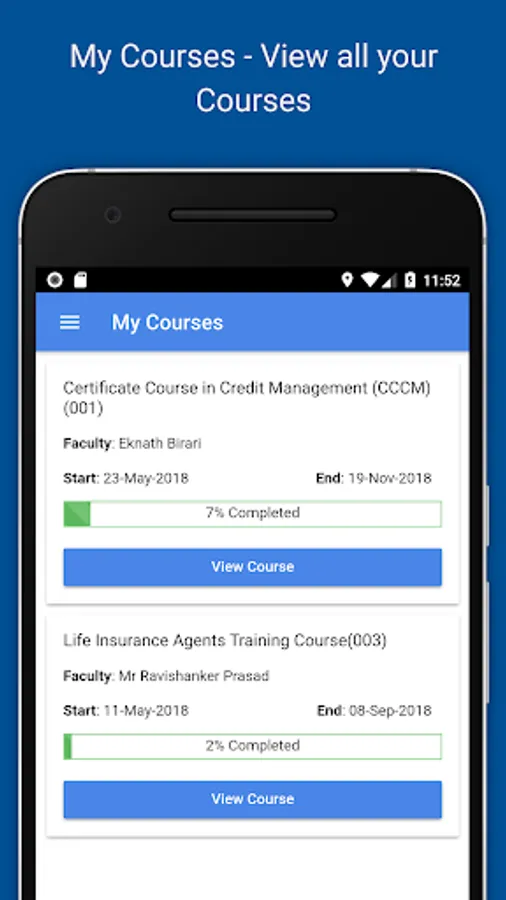 Trainees can view all the modules of their course and attempt their final evaluation using this app.