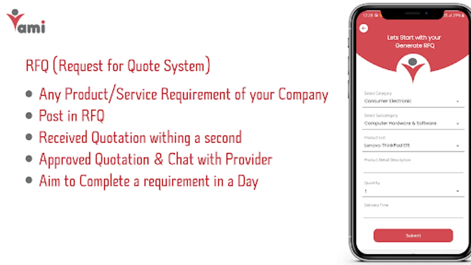 Yami - B2B Marketplace to Manage Business to Business Profile connection with the support of Chat & RFQ Function.