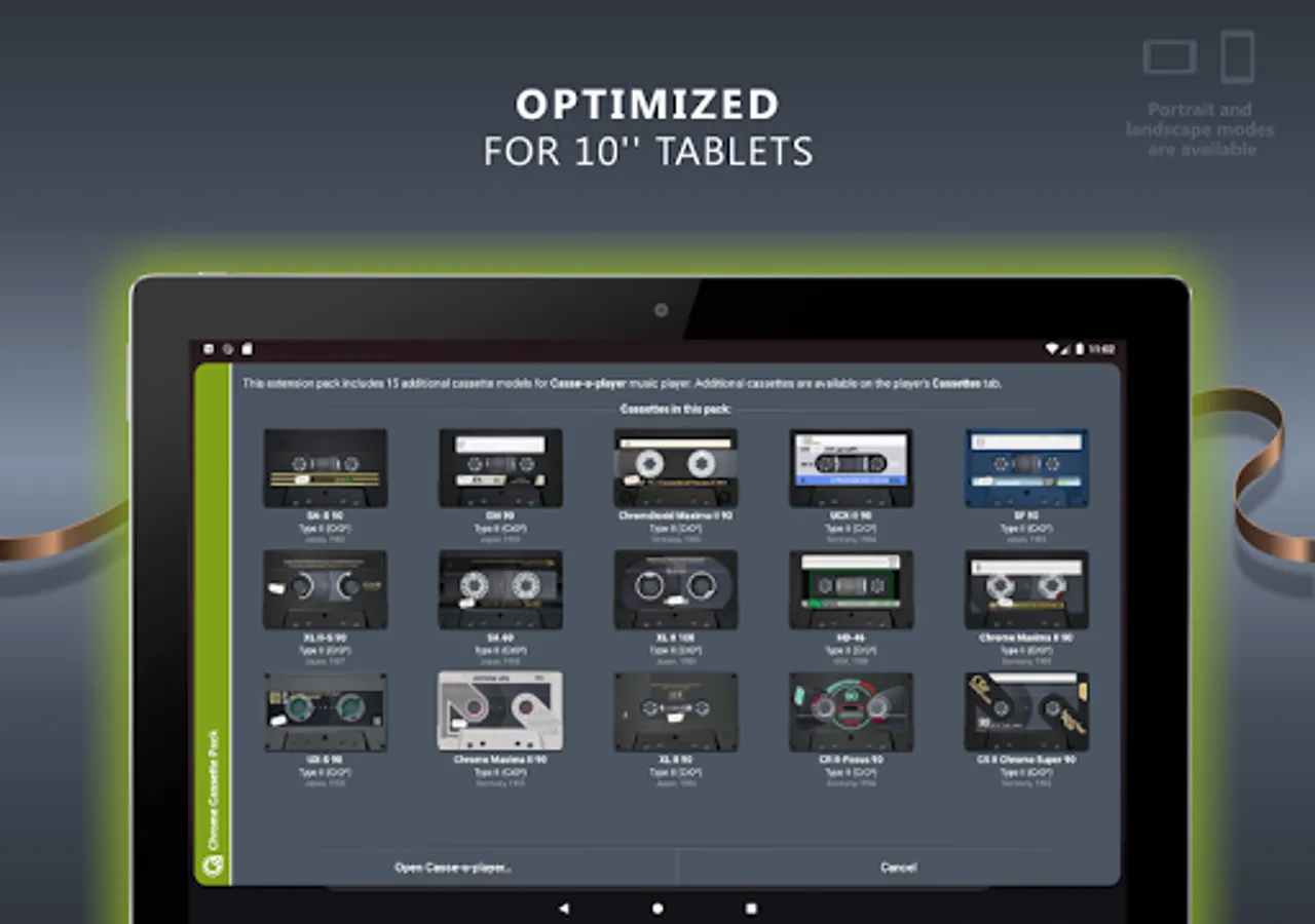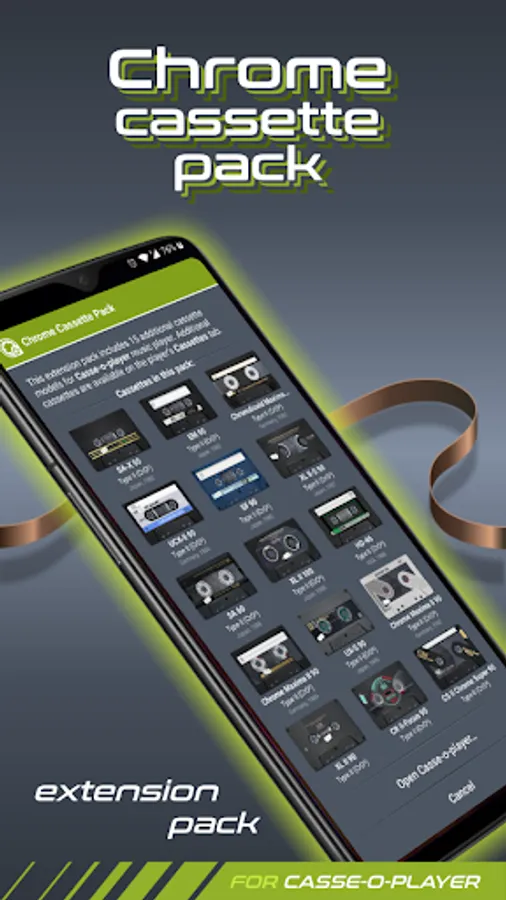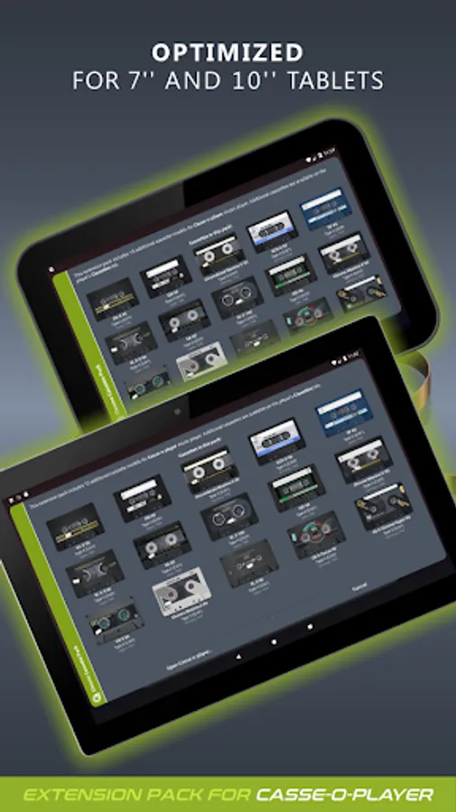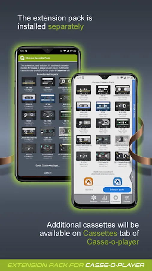 To use this expansion pack, you should install or update Casse-o-player to version 3.0.14 or higher. Additional cassettes from this pack will be available in the Casse-o-player on the "Cassettes" page in the "Extension packs" section.