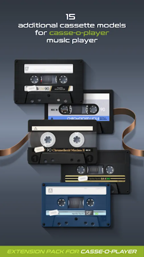 This extension pack includes set of 15 additional cassette models for Casse-o-player music player.