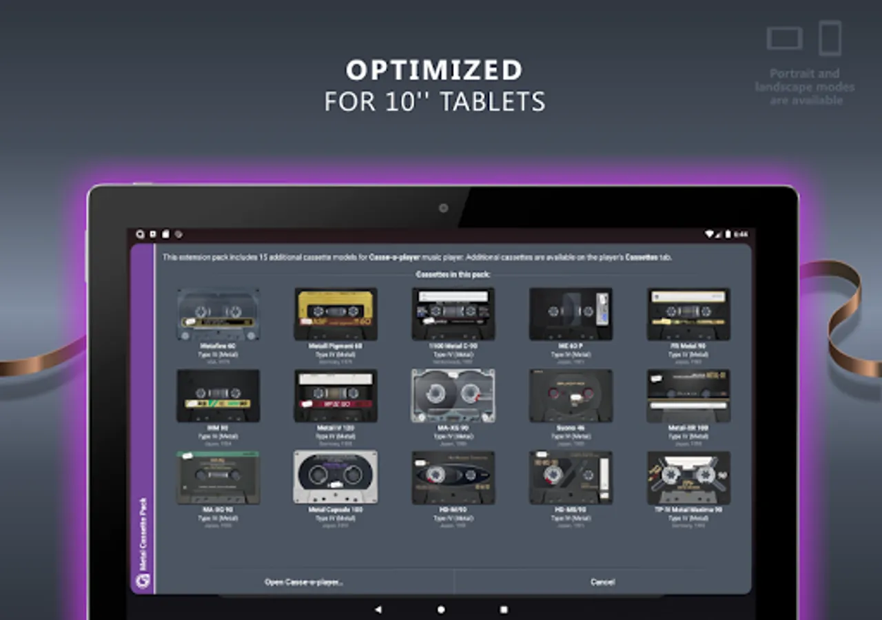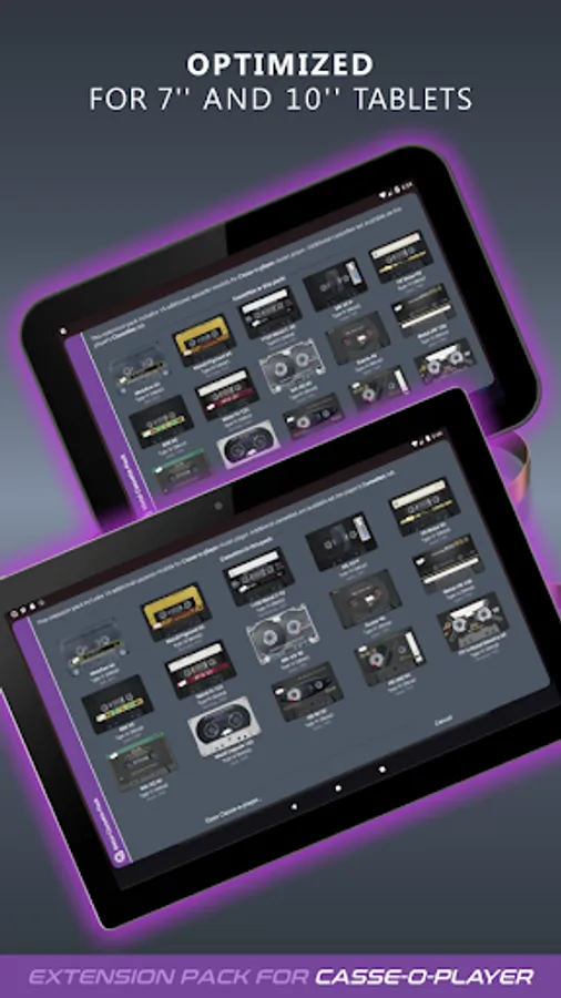 To use this expansion pack, you should install or update Casse-o-player to version 3.0.16 or higher. Additional cassettes from this pack will be available in the Casse-o-player on the "Cassettes" page in the "Extension packs" section.
