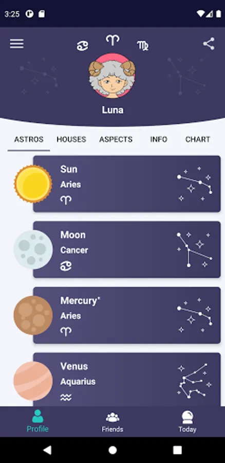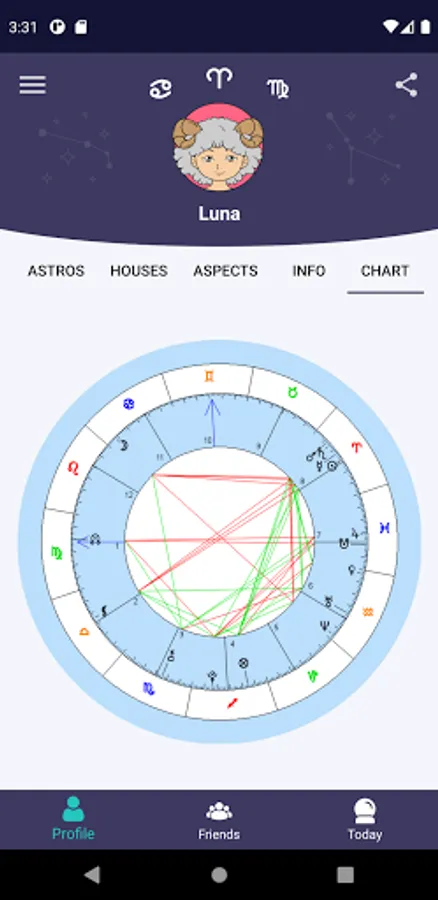 Discover your astral chart and compare it to your friends. Horos allows you to visualize your astral map completely, with the description of each astro and sign of the moment of your birth.