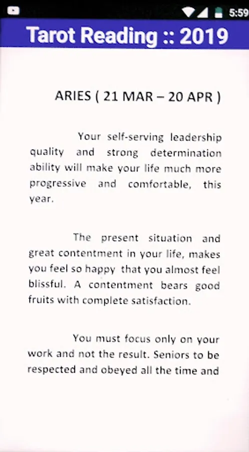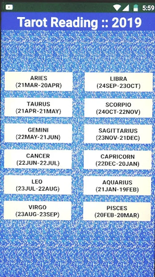 This app provides annual forecast for all Zodiac signs as per Tarot Card Reading.
