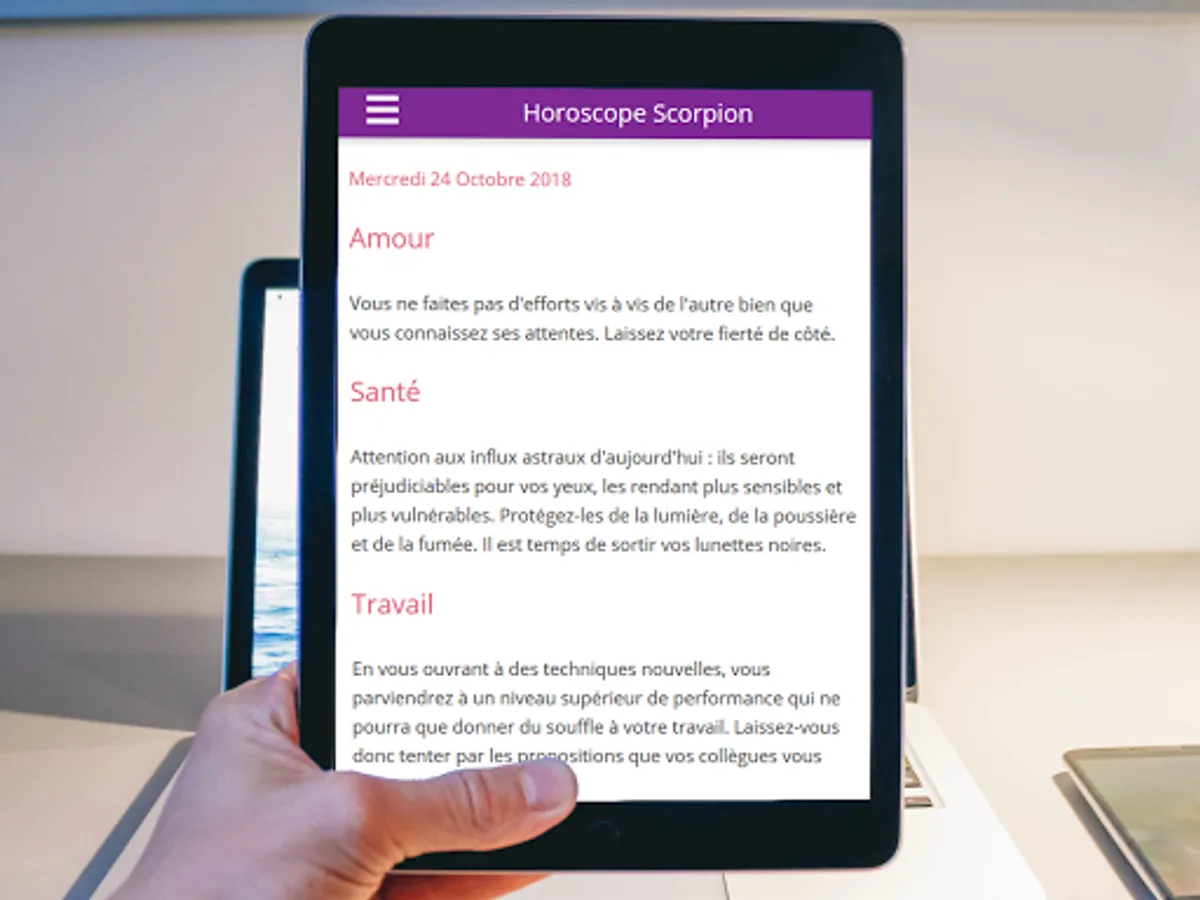 My daily horoscope provides you with a daily quality horoscope to guide your day so that it is as pleasant as possible and if the things announced seem negative this will allow you to face them in the best way.