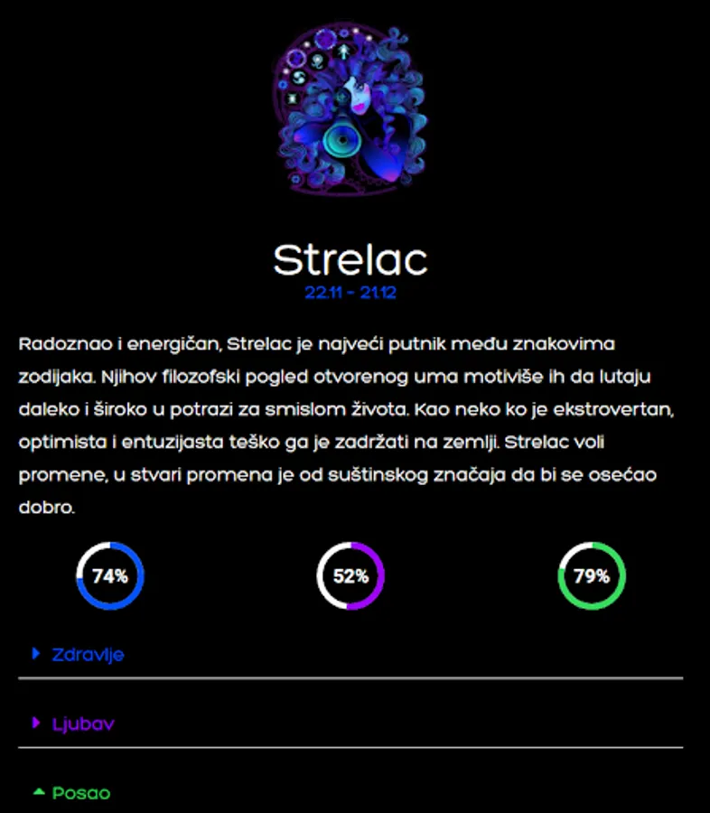 This horoscope in the Serbian language, called "horoscope", is an original version that delighted people all over the old Yugoslavia, which was our intention. An English version of the horoscope will be released soon. Beautiful design, daily horoscope update. Follow the annual horoscope, monthly horoscope, daily horoscope completely free.