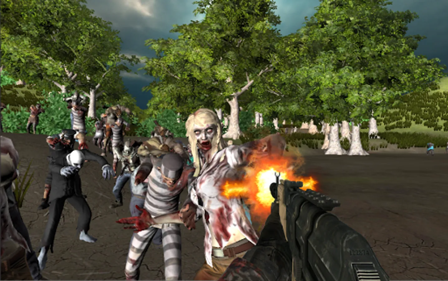 In the quiet, scary and creepy depths of the dark haunted forest you are alone to fight the wandering zombies in the woods you have only one chance to survive before zombies kills you. Do what you have to in order to stay alive, keep moving as fast as you can away from zombies following you, and protect yourself by any means necessary. Kill all the scary walking dead zombies to escape from dark forest before you run out of bullets.