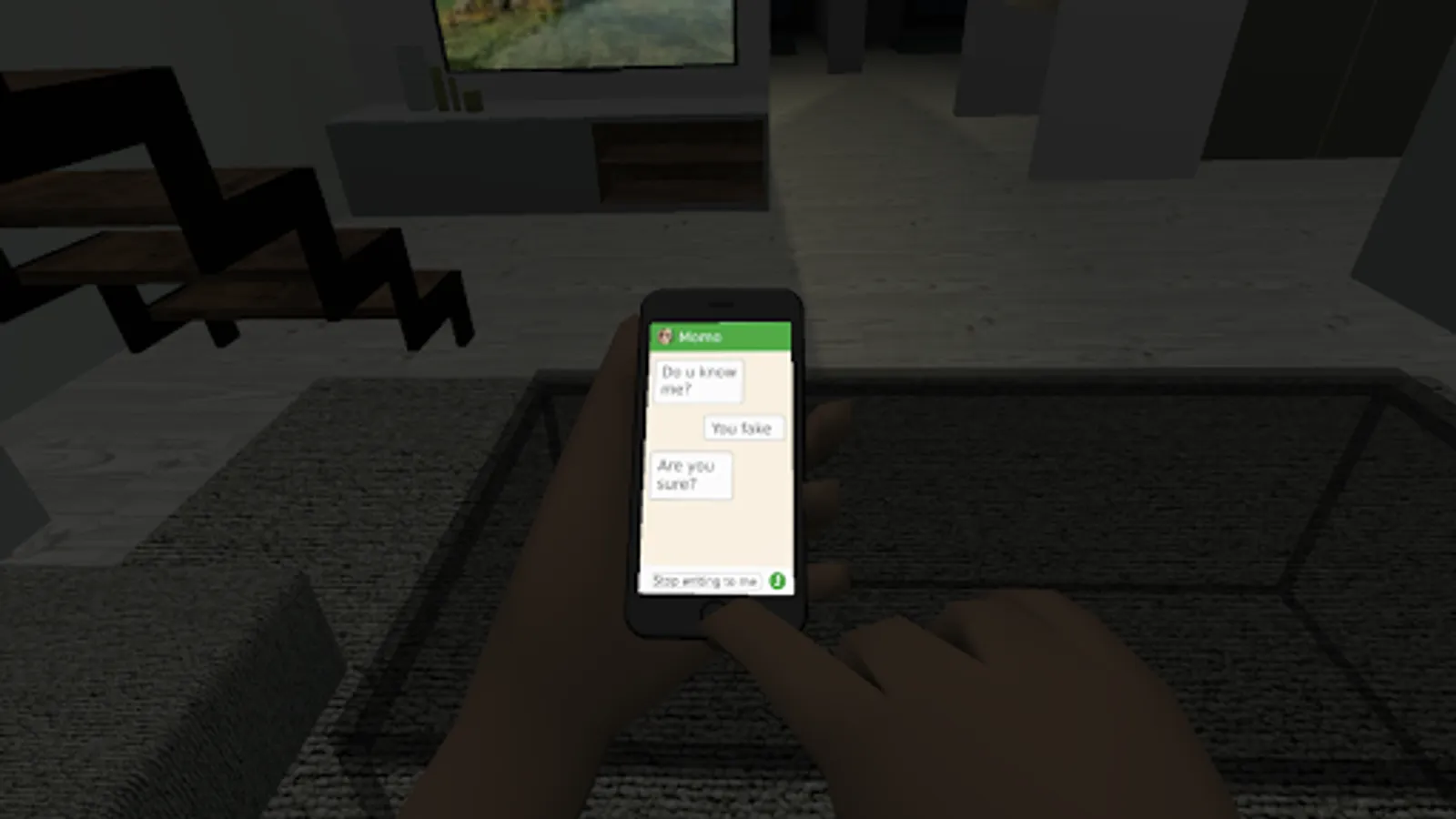 It was an ordinary day. After hard work, you decided not to go out with friends and stayed at home. Nothing boded trouble, but suddenly a notif ication comes to your phone. Who could write you so late? Looking at the screen you see a message from an unknown contact. It turned out that tonight you are not alone at home ..