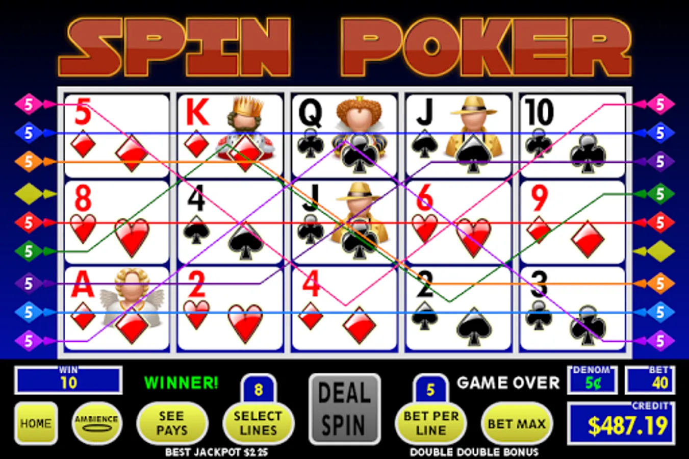 Feel the excitement of a true casino environment with Spin Poker, where Video Poker and Slots get combined so you can play up to 9-lines at once for ultimate payouts.