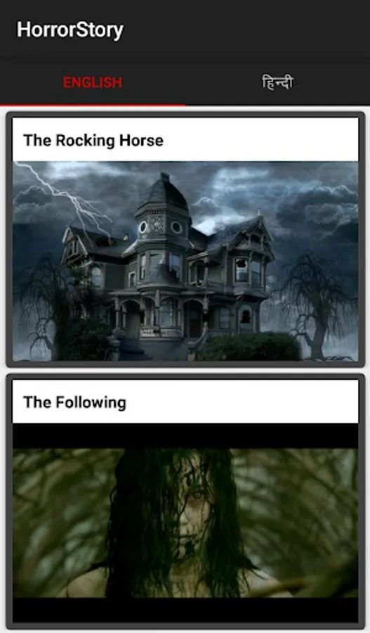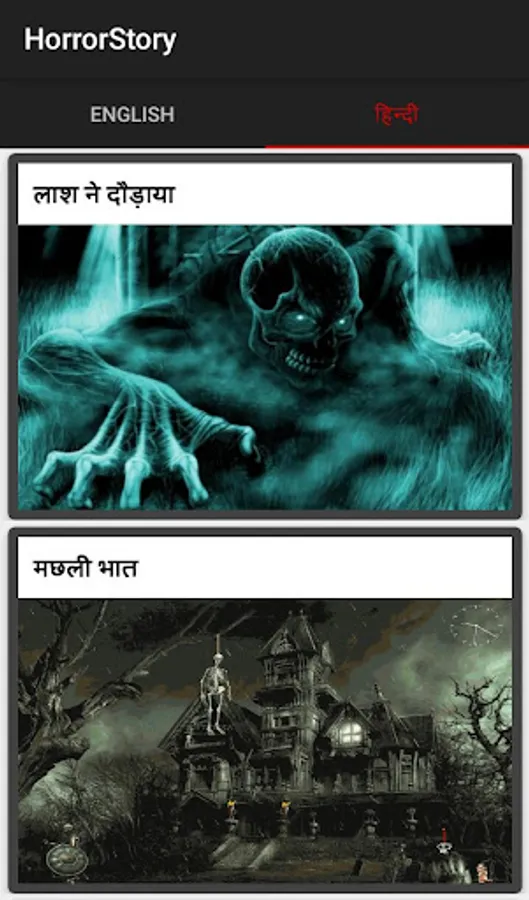 Horror story application provide you to stories in two differnt languages English and Hindi.