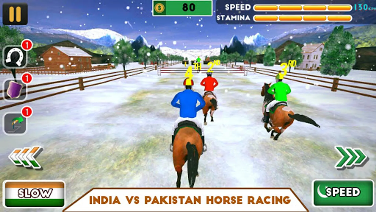 If horse racing is your passion then play India vs Pakistan Horse Racing 3D: Derby Race, it will let you fly in the air through your favorite horse. Bring back your country's legacy and become a champion!
