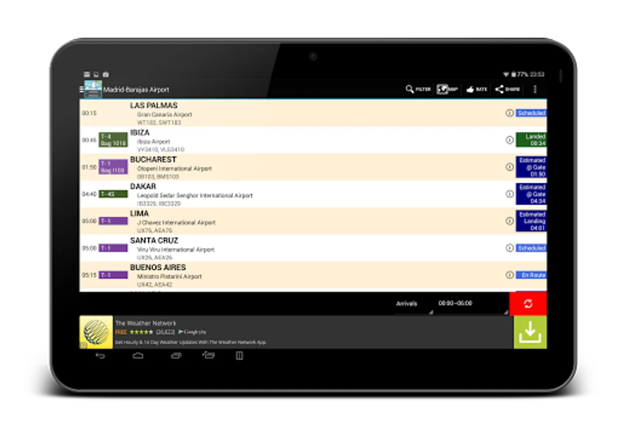 • 3 days worth of arrivals and departures information (yesterday, today and tomorrow)