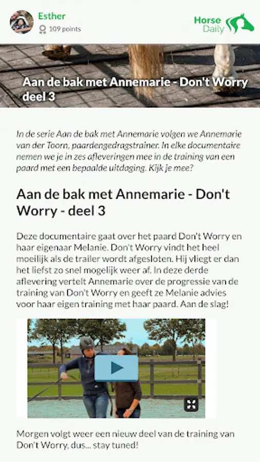 In the HorseDaily App you’ll find video’s, vlogs, blogs, tips, podcasts and interactive quizzes by many different experts in the equestrian world. It’s full of information about an incredible range of topics including horse health, training, nutrition, behaviour and so much more.
