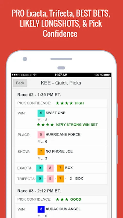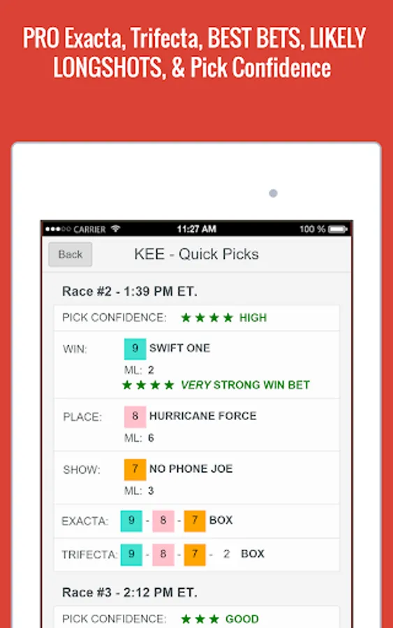* NO BETS are placed when purchasing premium picks. To place a bet based off the premium horse racing picks, please use other apps such as TVG, Nyra Bets, Twinspires, etc.