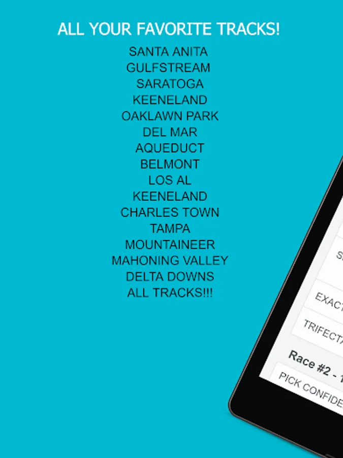 * Perfect companion app for playing simulcast or playing at home using betting app's from TVG Fanduel Racing, 1/ST Bet, TwinSpires, Nyra Bets, or any other Advanced Deposit Wagering (ADW) service.