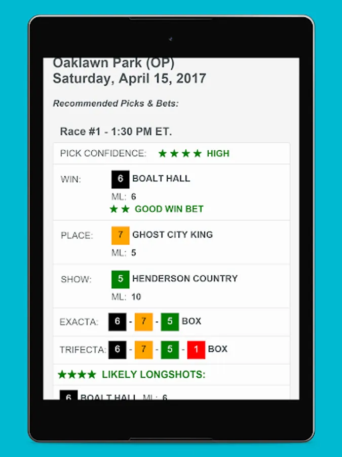 * Best Bets and Longshots of the day are now sorted by time of race so that you never miss a longshot play again!