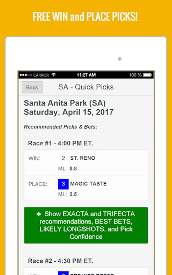 * PLEASE NOTE: THIS APP IS NOT TVG. NO HORSE RACING BETS ARE MADE, OR CAN BE MADE WITH THIS APP. This app simply provides the Best Free & Premium Horse Racing PICKS & TIPS in the world!