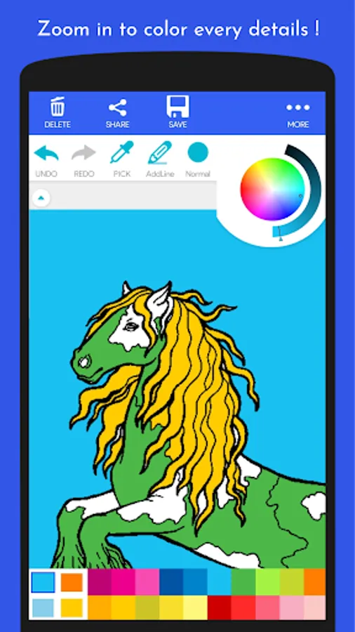 So, what are you waiting for? Download and install animal coloring book: horse coloring. Take a break and enjoy our amazing Coloring Book. Choose the picture you like and start coloring in one tap. You will be amazed how something so simple can bring so much relief and fun!