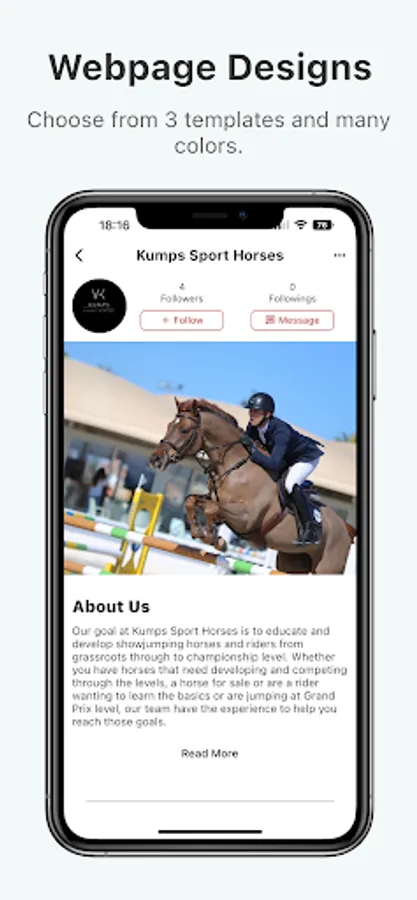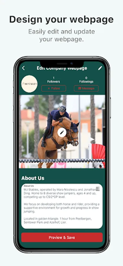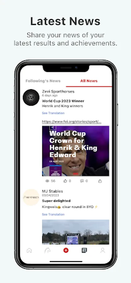 • List your company and horses in the directories and publish the latest news or blog on the in-app platform.