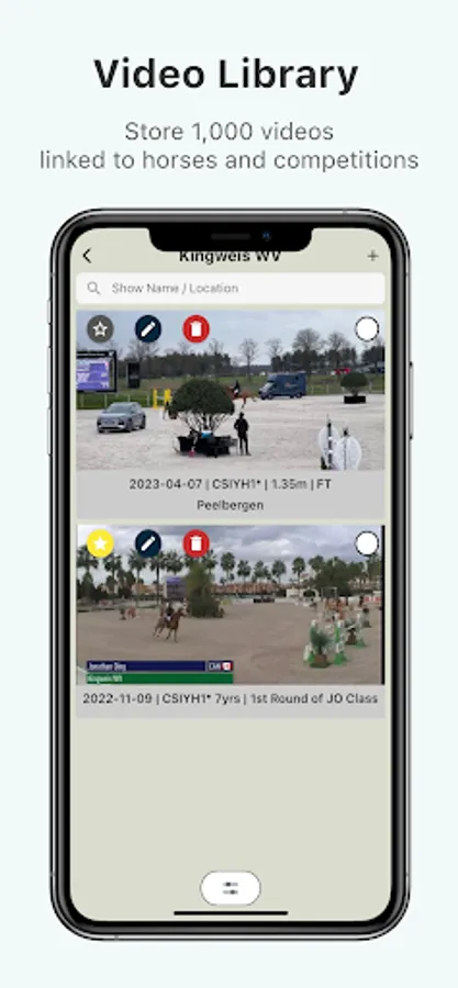 • Share your horse information and videos with others, in the app or outside the app.