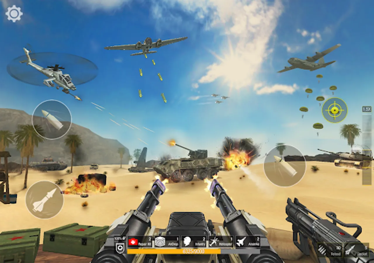 There are over 50 types of combat tanks, hundreds of combat planes, ships, drones, and other war vehicles from World War 3. Players will receive air support attacks from B58 bomber planes.